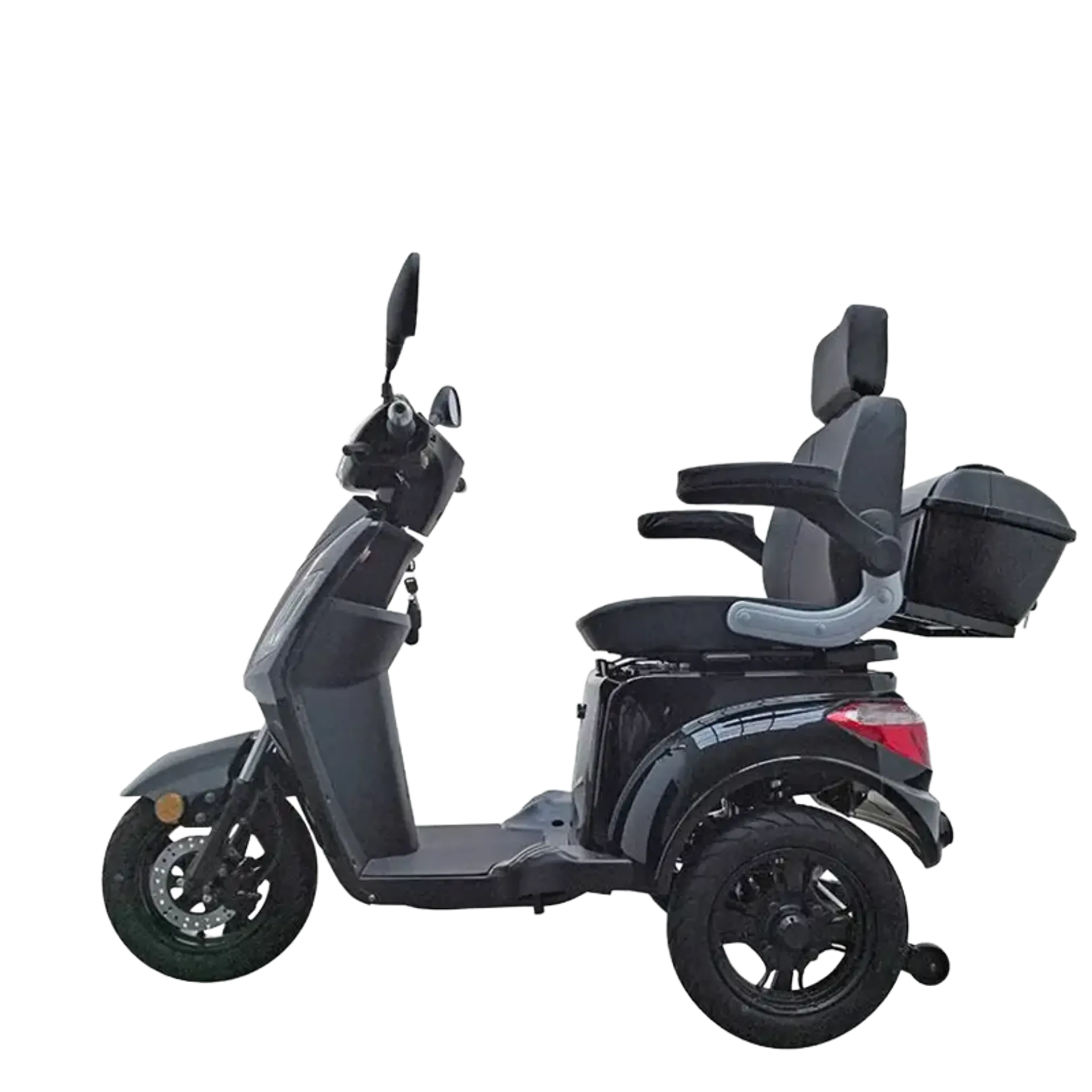Der For Motion Fast One ist ein stylischer dreirädriger Mobilitätsroller, erhältlich in Rot und Schwarz, der Komfort und Mobilität ohne Führerschein- oder Helmpflicht bietet. Sein leistungsstarker 1000-W-Elektromotor und die langlebige Batterie machen ihn ideal für Fahrten in der Stadt und für längere Ausflüge.